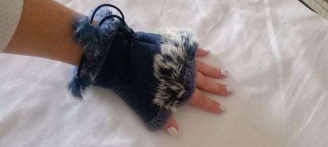 Guantes azul marino en piel vuelta sin dedos y con pelitos. Nuevos