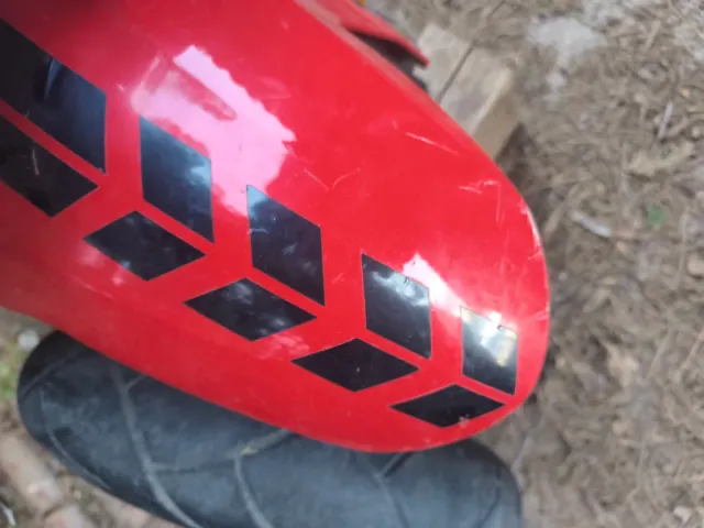 Detalles del productoGuardabarros delantero para scooter Peugeot Speedfight 4 de 49cc. Presenta un diseño deportivo en color rojo con detalles gráficos en negro.