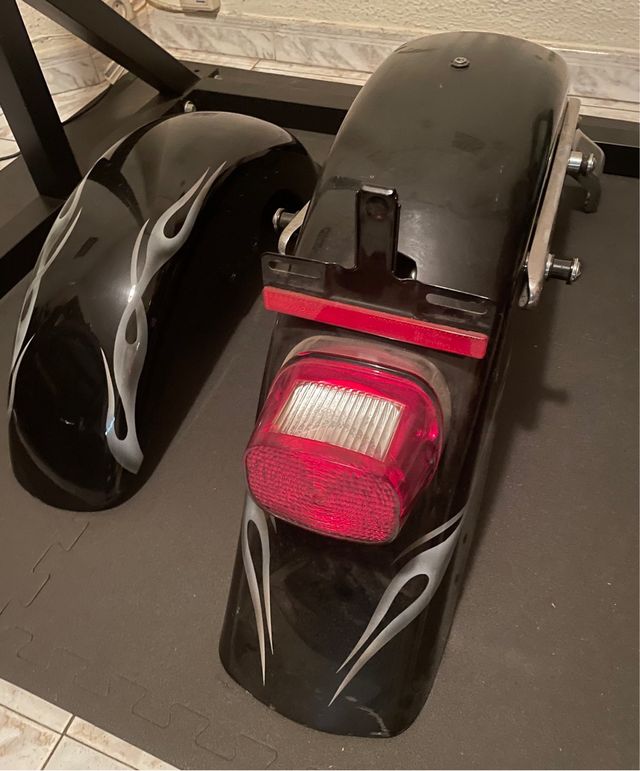 Detalles del productoPar de guardabarros para Harley Davidson, sacados de una softail fat boy del 2004, en color negro con detalles en gris. Están en buen estado.