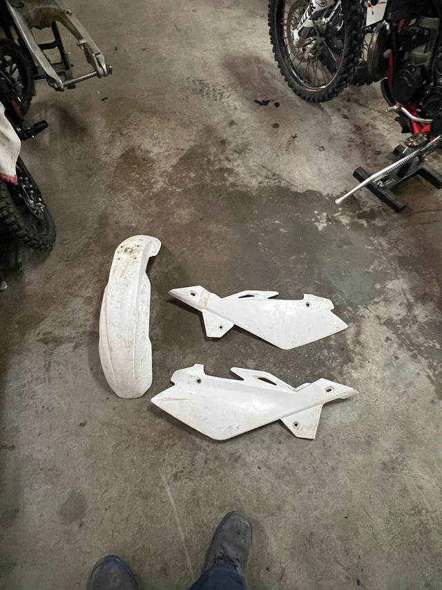 Piezas de plástico para Husqvarna WR 2007. - Guardabarros delantero blanco. - Dos cachas laterales blancas.