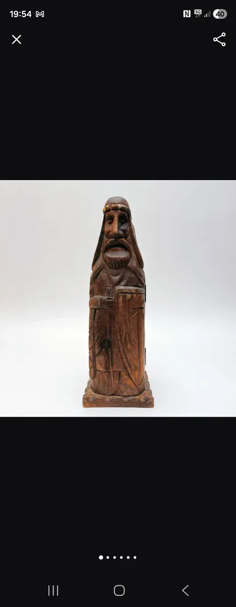 Detalles del productoGuardabotellas artesanal tallado en madera, con forma de figura clásica de estilo rústico-medieval.