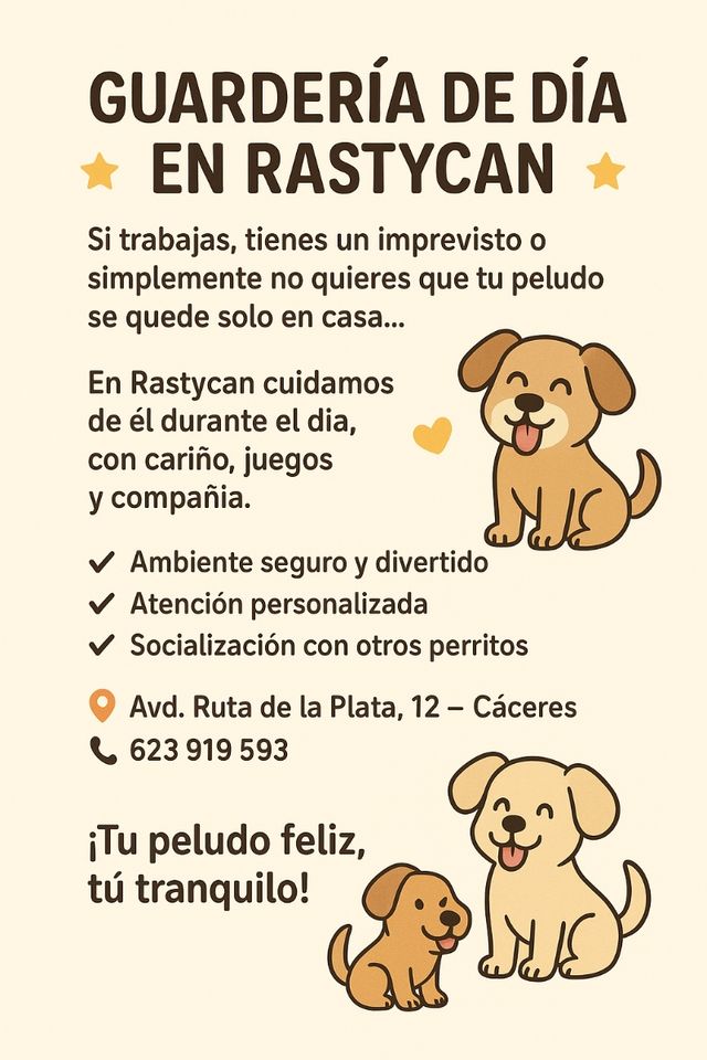 👉 En Rastycan cuidamos de él durante el día, con cariño, juegos y compañía.