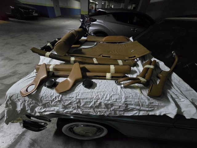GUARNECIDOS-MOLDURAS-REPOSACABEZAS-REPOSAMANOS-CALANDRA. LOTE COMPLETO MERCEDES W115. PRECIO A CONVENIR