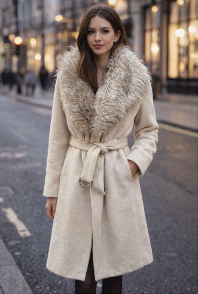 Tiene unas manchas por dentro que habría que sacar, no se ven desde fuera con el abrigo puesto. Queda espectacular
