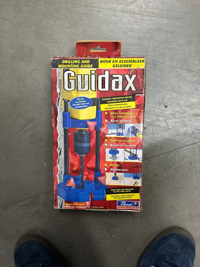 Detalles del productoSoporte para taladro Guidax, ideal para trabajos de precisión.