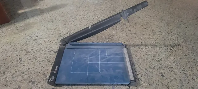 Guillotina de corte para papel, marca DAHLE. Ideal para trabajos de oficina o manualidades. - Base de corte azul. - Regla lateral para medidas. - Cuchilla afilada para cortes precisos.