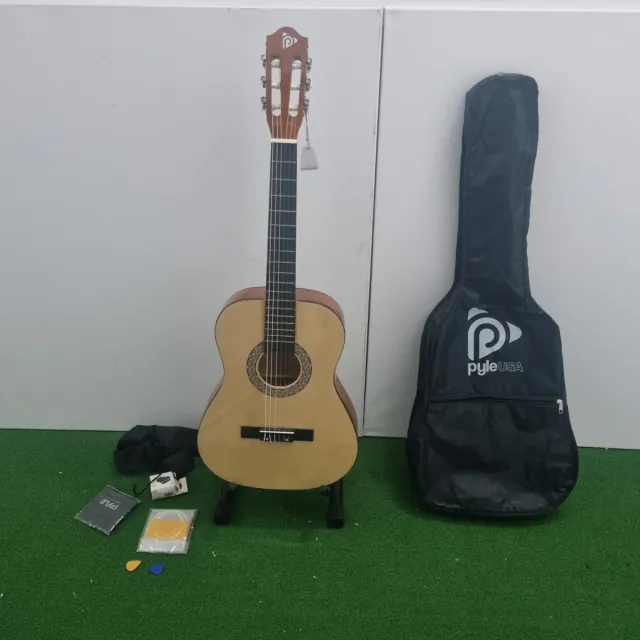 Detalles del productoGuitarra acústica Pyle de tamaño infantil, ideal para iniciarse en la música. Incluye funda y accesorios.