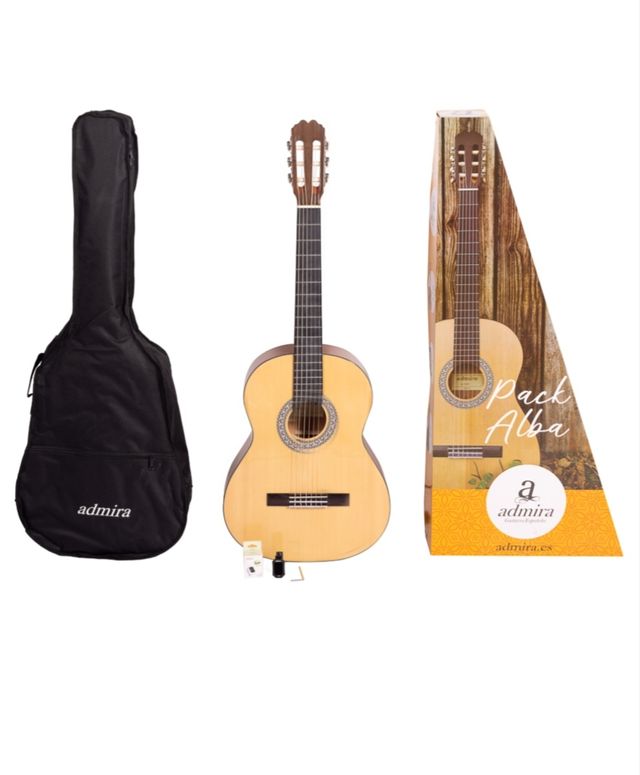 admira PACK GUITARRA ALBA 3/4 INCLUYE: GUITARRA CLASICA ALBA 3/4 BRILLO. FUNDA DE NYLON ADMIRA. AFINADOR DIGITAL DE PINZA. TIRO: 590 mm.