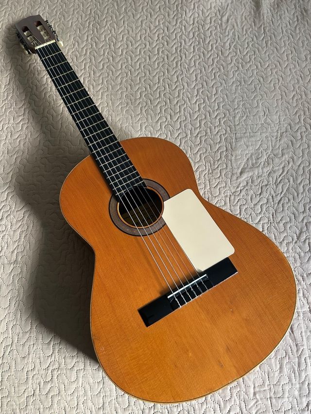 Guitarra clásica española con un acabado en madera natural. - Cuerpo de madera. - Mástil de madera. - Diapasón con trastes. - Todo Original de la época.