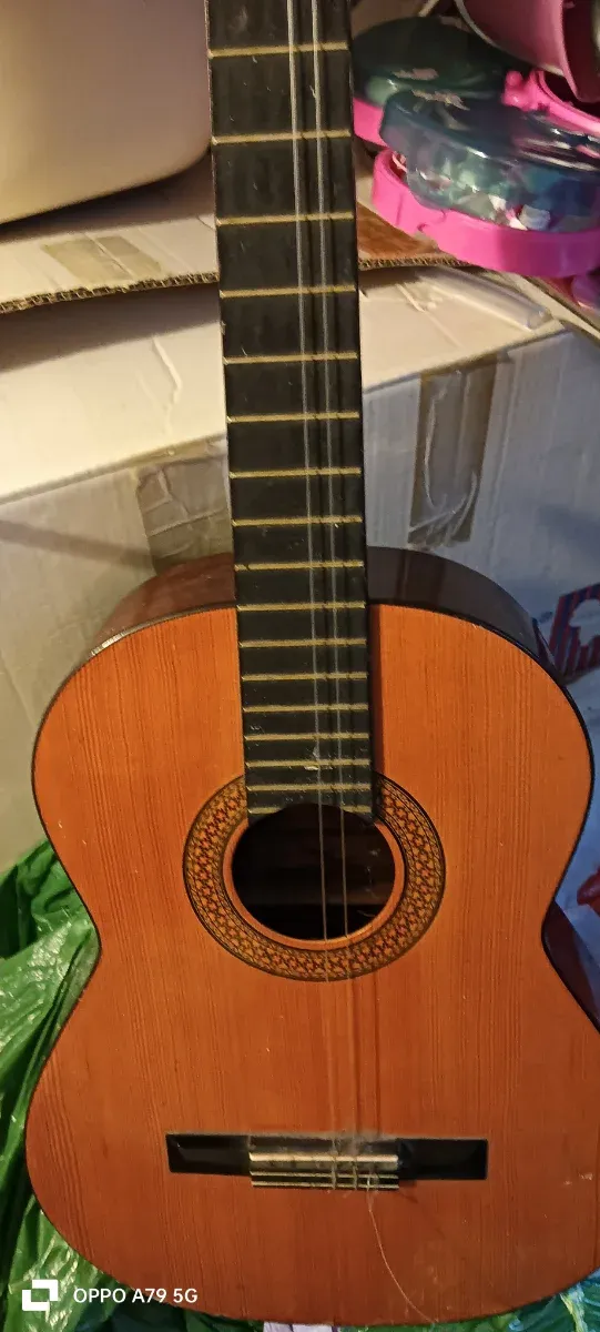 Guitarra clásica de madera con un acabado natural y cálido. Ideal para iniciarse en el mundo de la música. - Cuerpo de madera. - Diapasón con trastes. - Cuerdas de nylon.