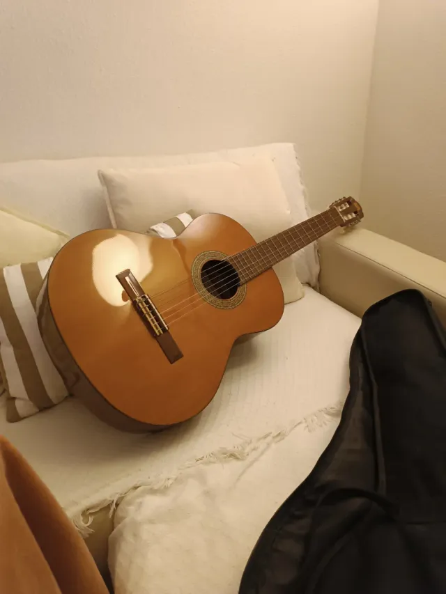 Guitarra clásica de color marrón, ideal para principiantes o aficionados. - Cuerpo de madera. - Mástil de madera. - Diapasón de madera.
