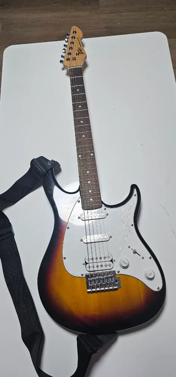 Detalles del productoGuitarra eléctrica nueva con /Funda para guitarra eléctrica de la marca Ritter. Es negra con costuras rojas y tiene un bolsillo frontal con cremallera.