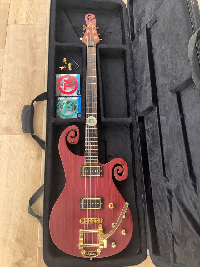 Es una guitarra más que especial, tanto en aspecto como en sonido. Muy cómoda a la hora de tocar. Es más que versátil para quien quiera investigar un poco más allá de la típica afinación en E.