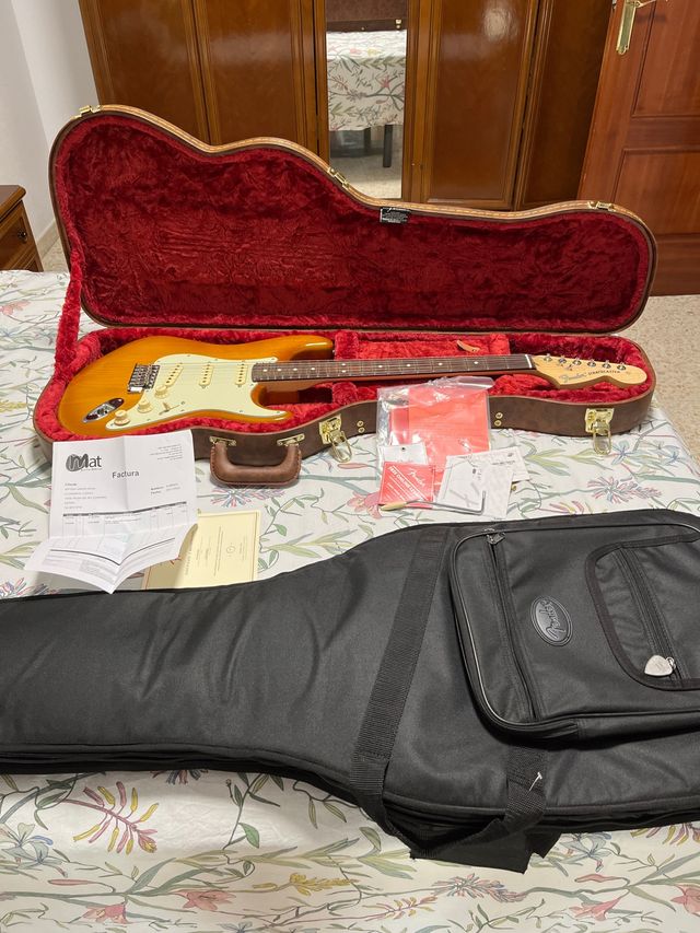 Detalles del productoGuitarra eléctrica Fender Stratocaster en perfecto estado, lista para ser tocada.