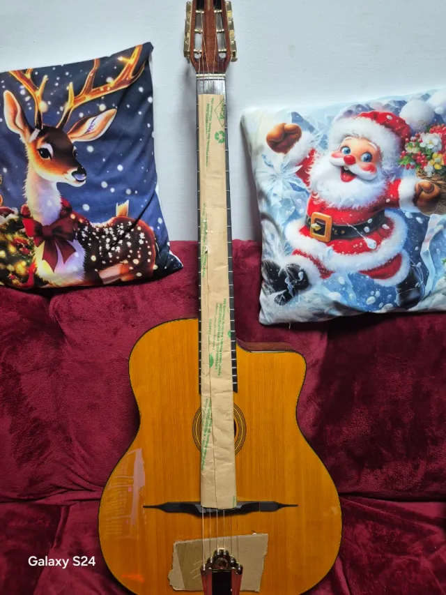 Guitarra española clásica con un acabado en madera natural. - Cuerpo de madera. - Mástil de madera. - Cuerdas de nylon.