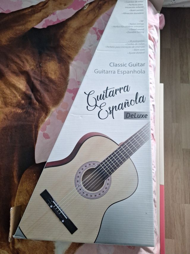 Guitarra Española Clásica Deluxe, en perfecto estado. Ideal para principiantes. - Incluye cuerdas de nylon. - Sonido nítido y brillante. - Acabado impecable.