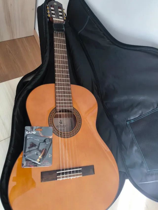Guitarra española de color madera.. Incluye funda protectora y un capo. - Guitarra española - Funda negra - Capo para guitarra