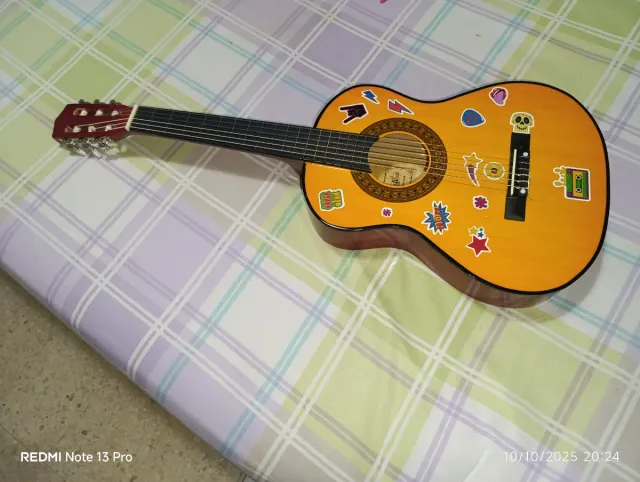 Detalles del productoGuitarra española de tamaño infantil, ideal para los más pequeños. Presenta un diseño llamativo con pegatinas.