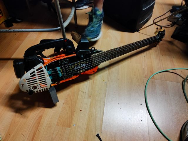 Detalles del productoFunciona perfectamente, os puedo mandar enlace video por wassap. No se desafina, ideal para metal . Podeis entrar en WASP sin hacer una prueba ni nada. Sonido destroza tehcno-monicacos. Me encontré a King Diamond por Almazora y me dijo que me uniera a ellos YA. Tb me llamaron los POISON pero eso os lo contaré en privado. ADVERTENCIA: Si suena riguitón la guitarra salta de su funda y asesina al que lo ha puesto. No acepto devoluciones por esta causa. Incluye correa de piel humana confeccionada por Michael Myers y sudario como funda.