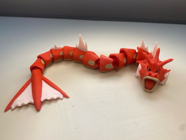 Gyarados articulado hecho con impresora 3D a color, el acabado es impecable