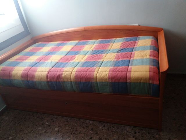Detalles del productohabitación con 2 camas nido de 90 cm armario de rincón mide de alto 240 cm de ancho 158 cm de fondo mide la parte del rincón que sobresale 103 cm y la otra parte 60 cm de fondo con 4 cajones tiene estantes y también para colgar ropa escritorio que mide 150 × 50 cm y dos estanterías es de buena calidad color cerezo