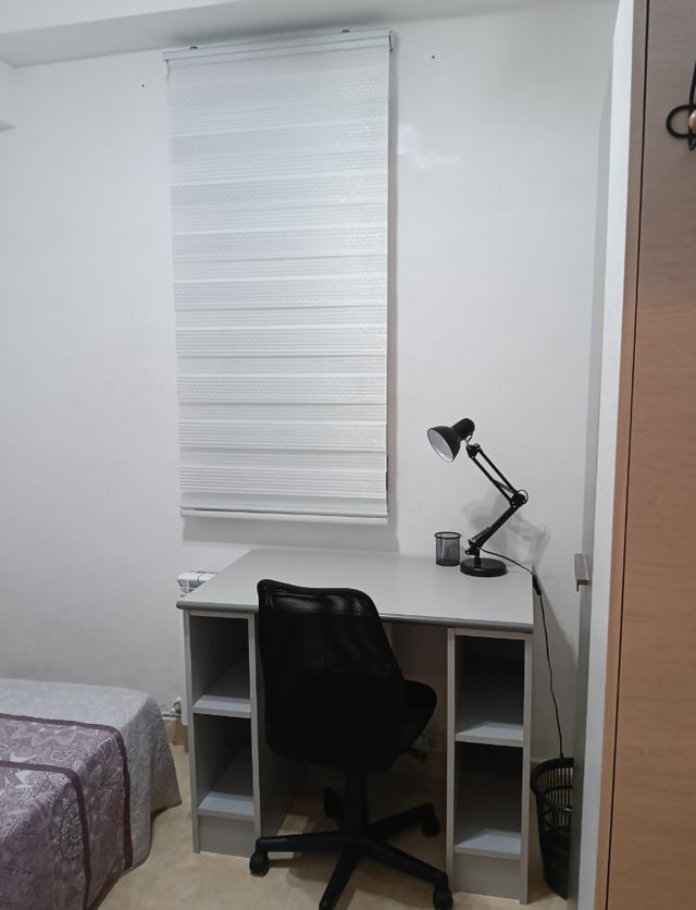 🛏️ Habitación privada con cerradura individual, amueblada para estudiantes: escritorio con flexo, silla ergonómica, armario, espejo de cuerpo entero, perchero, papelera, cubilete para bolis... ¡Para que estudies a gusto!