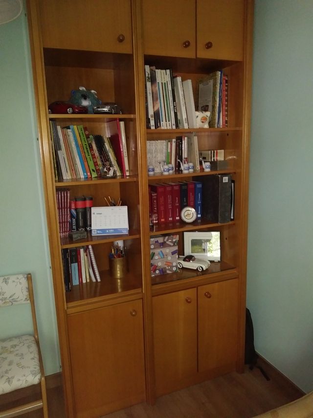 Habitacion compuesta por 2 camas que tambien pueden ser literas, armario y estanteria que tambien se hace escritorio. Incluye tapiglex con patas asi como el colchon.