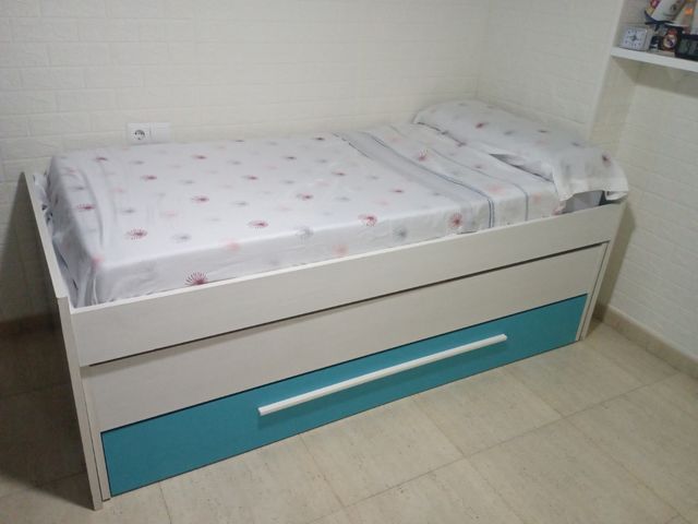Detalles del productoSe vende habitación juvenil tipo nido, ideal para optimizar el espacio. Cuenta con dos camas y amplios cajon para almacenamiento.