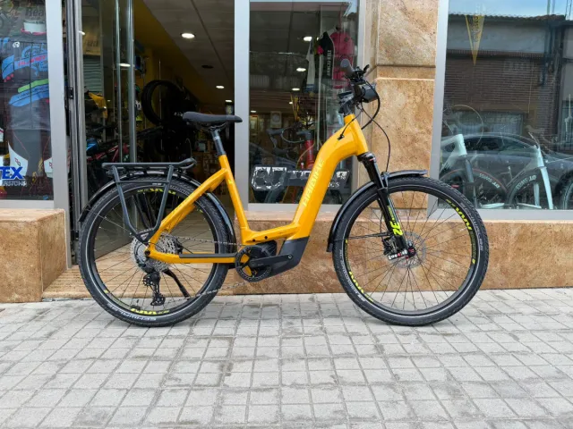 Haibike Trekking 8 de color amarillo. Cuadro de aluminio Motor Bosch 85 nm smart system Bateria 750 Kiox 300 Shimano cues Última unidad talla L