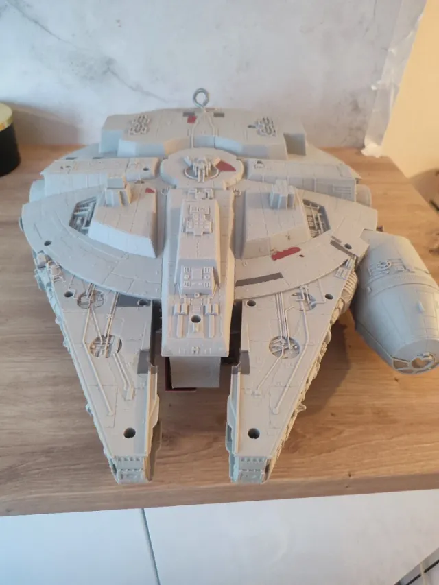 Réplica detallada del icónico Halcón Milenario. - Diseño inspirado en la nave de Star Wars. - Acabado en color gris claro. - Ideal para coleccionistas.