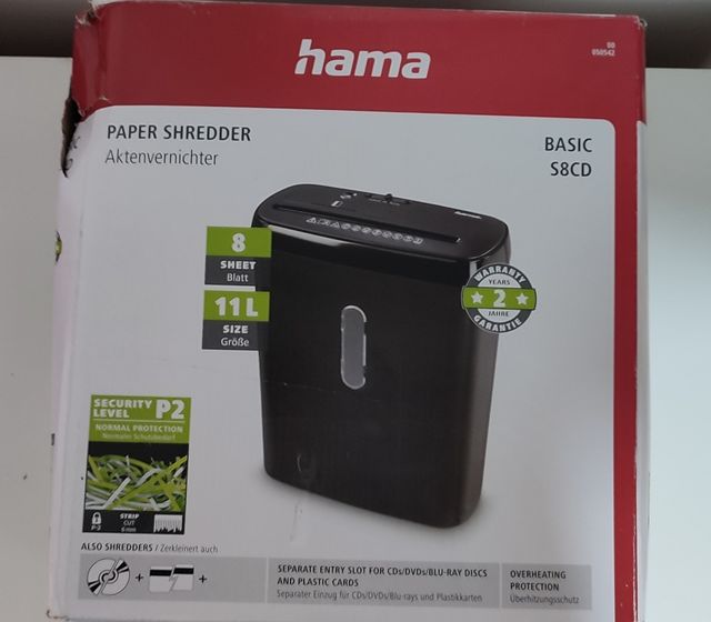 Hama, Trituradora de Documentos de 11L, Destruye Tarjetas de plástico,CDs/DVDs y/o Discos BLU-Ray, 30.6 x 15.5 x 37.3 cm, Uso doméstico, 8 Blatt