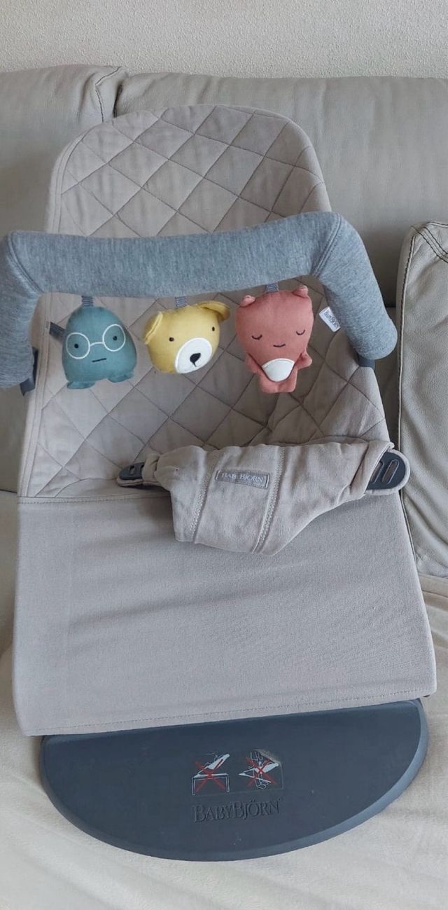 Hamaca BabyBjörn con poco uso, incluido funda gris y accesorio, tal y como se ve en la imagen
