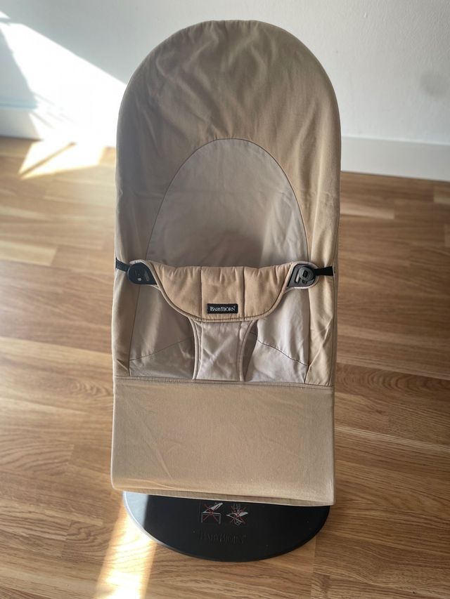 Hamaca BabyBjörn balance Soft con funda de algodón en beig. 3 posiciones, plegable y ligera. En perfecto estado.