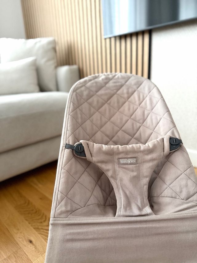 Hamaca BabyBjorn en color beige, con funda. - Diseño acolchado. - Tejido suave al tacto.
