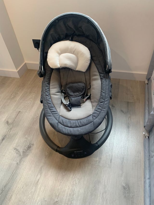 Detalles del productoHamaca para bebe, con movimiento y distintas melodías para dormir al bebe. Funciona con corriente y pilas, incluye mosquitera. Con control por Bluetooth y mando a distancia. Comprado en Enero 2024, con ticket original y garantía hasta enero 2026.