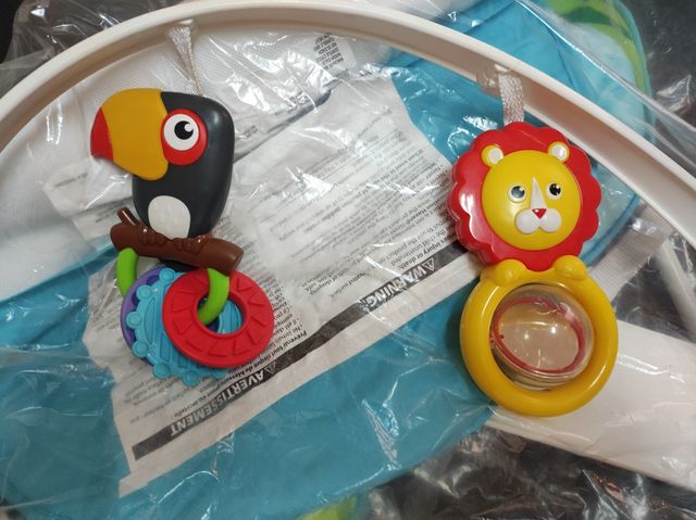 Hamaca bebe que vale como silla completamente nueva sin roces tela impecable y muñecos sin roces