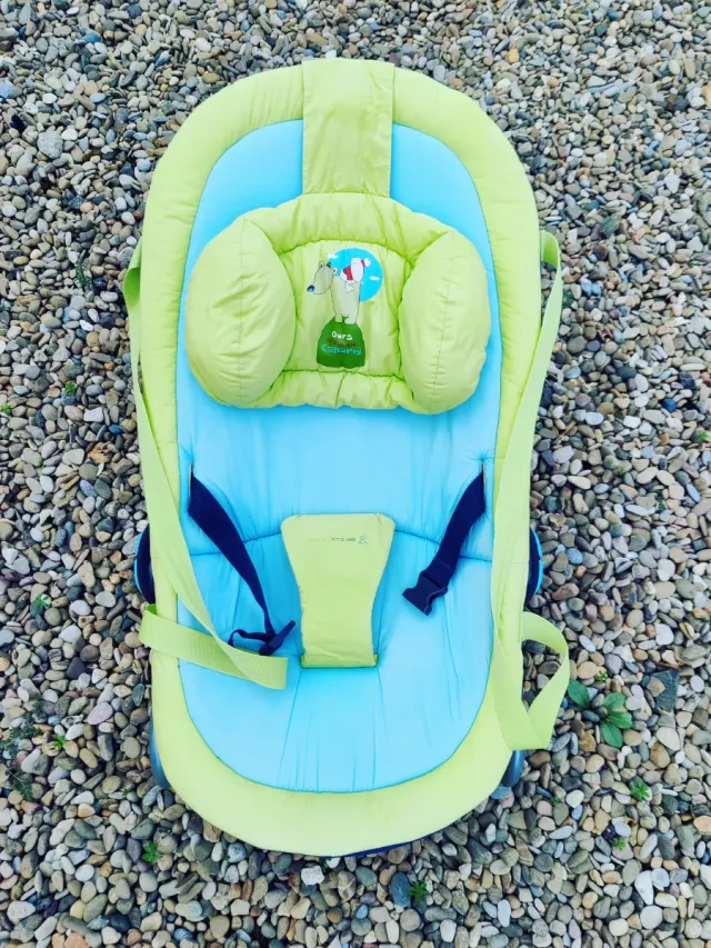 Hamaca para bebé con un diseño divertido y acolchado. - Color verde lima y azul - Incluye arnés de seguridad