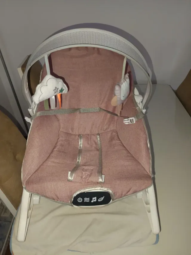 Hamaca para bebés con un diseño acolchado y cómodo. - Incluye juguetes colgantes. - Arnés de seguridad.