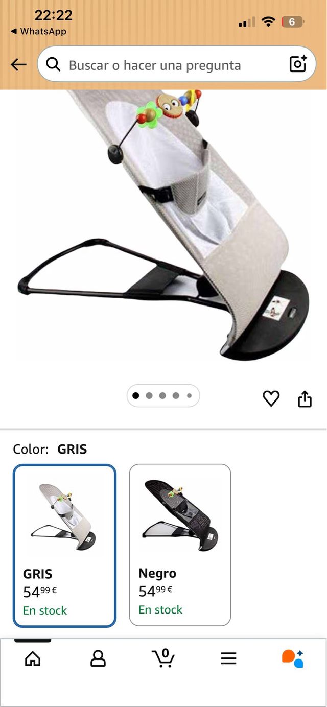 Hamaca para bebé en color gris. Es cómoda y segura para los más pequeños. - Color: Gris - Precio nueva: 54,99 € -hay que cambiare las pilas al juguete