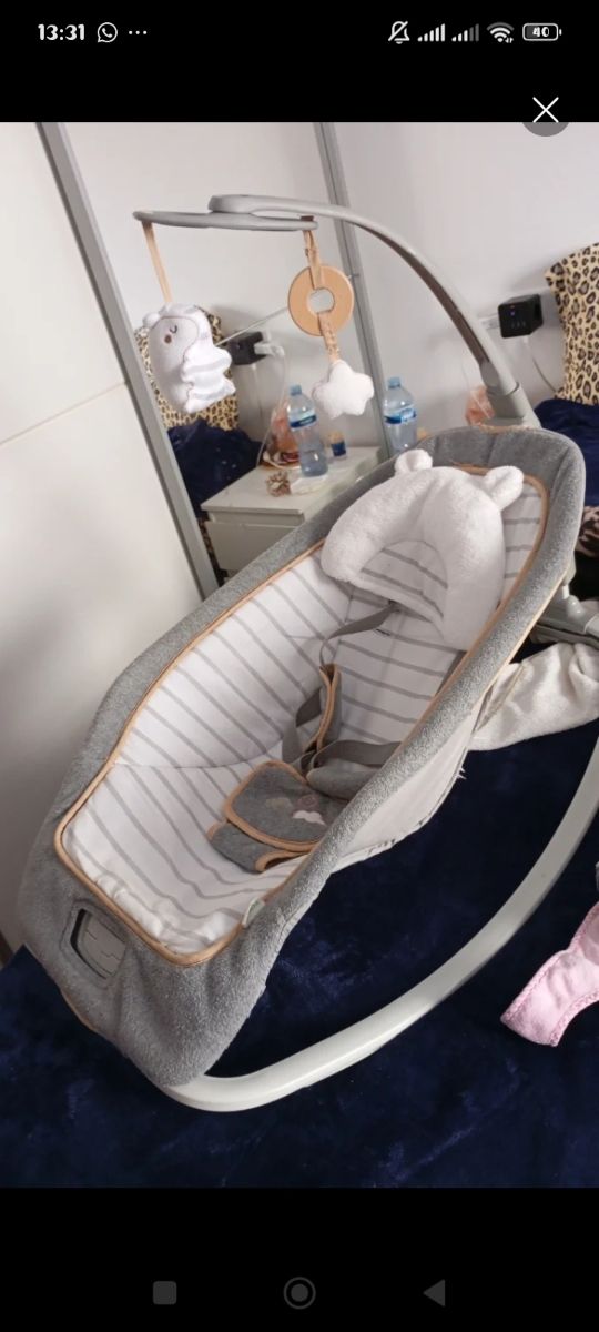 Detalles del productoPreciosa hamaca para bebé, en color gris claro con rayas blancas. Está en muy buen estado y es perfecta para que tu pequeño descanse o juegue.