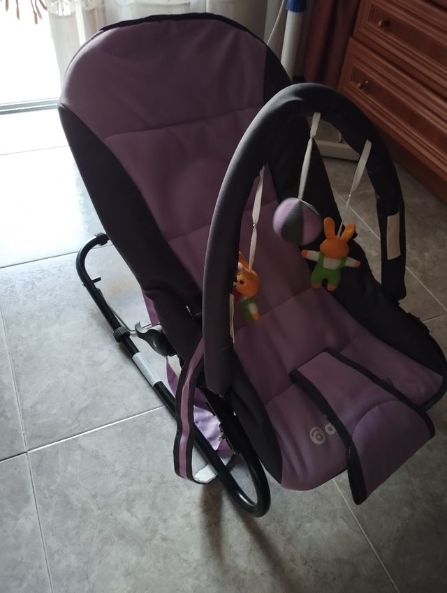 Detalles del productoHamaca para bebé en color morado y gris. Está en buen estado y es perfecta para que el bebé se relaje y se divierta.