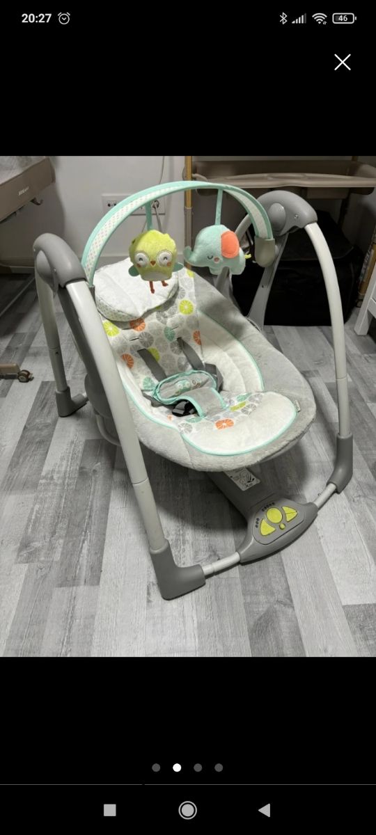 Hamaca en muy buen estado. Balanceo automático, tres posiciones y música. Plegable y fácil de transportar. Incluye pilas con muy poco uso.