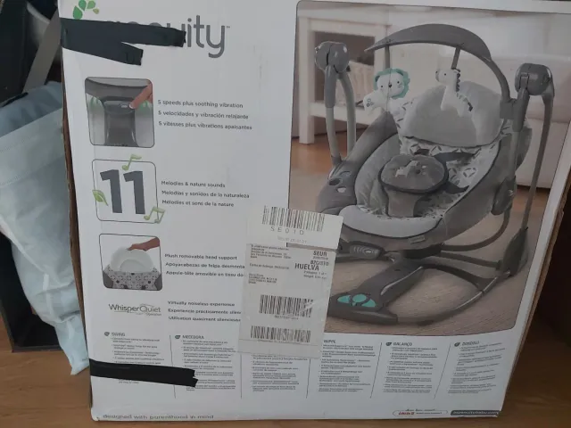 Detalles del productoHamaca eléctrica de la marca Ingenuity en color gris. Cuenta con múltiples funciones para el confort del bebé.