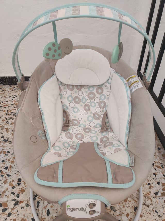 Hamaca para bebes marca Ingenuity, tiene opción para poner melodia y vibración. Tiene muy poco uso.