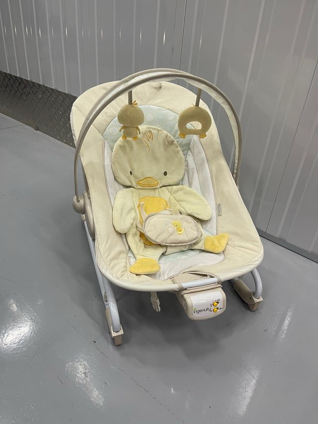 Detalles del productoPreciosa hamaca para bebé de la marca Ingenuity, en tonos beige y amarillo. Está en buen estado y lista para usar.