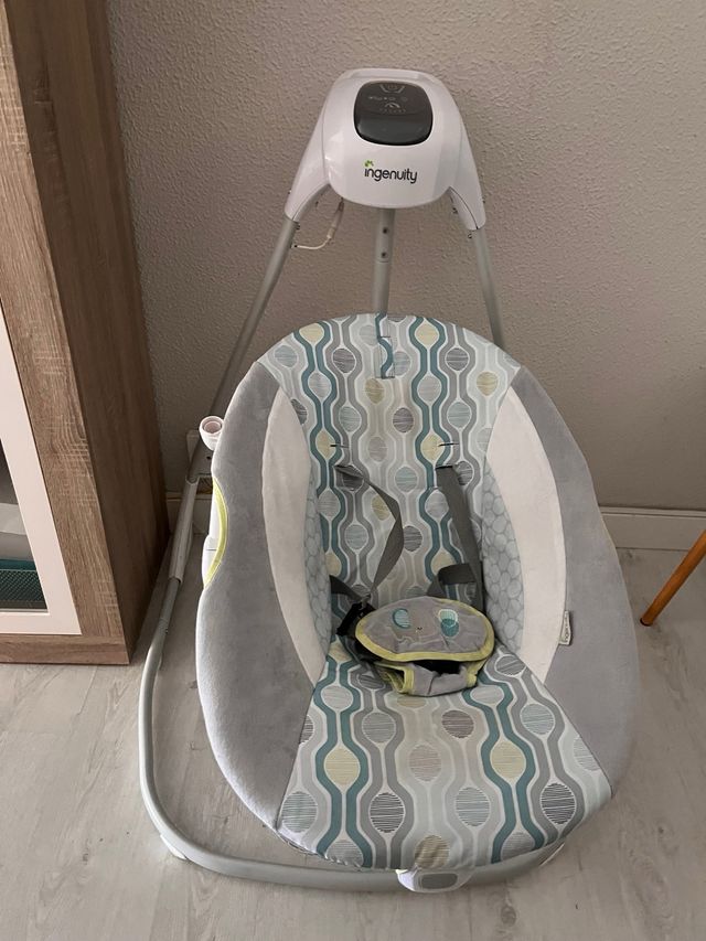 Detalles del productoHamaca mecedora para bebés de la marca Ingenuity. Cuenta con un diseño moderno y cómodo.