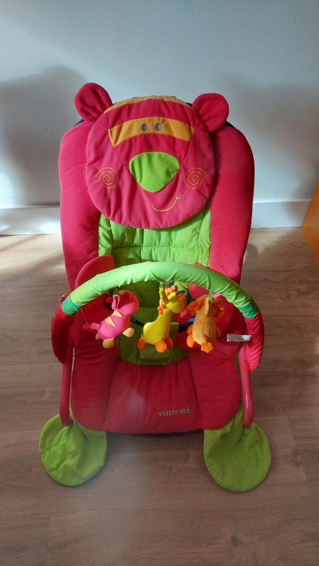 Detalles del productoHamaca musical y vibratoria, acolchada y plegable, con diferentes tonos o melodías, de la marca voltereta comprada en El Cortd Inglés. De a 9 meses.Máximo 9kg.. Reclinado en varias posiciones, las patas de posición fija se pueden plegar para convertirse en balancín, asiento esenfundable y funda lavable, mecanismo bloqueo hamaca, Se envía o entrega en su embalaje original bastante deteriorado pero la hamaca está en muy buen estadoo. El arco con animalitos colgantes se puede quitar.. No sé incluyen las pilas.