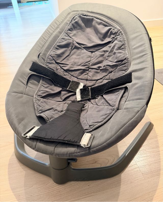 Hamaca para bebé de la marca Nuna. Su diseño ergonómico y acolchado ofrece comodidad. - Color gris. - Arnés de seguridad. - Base estable.
