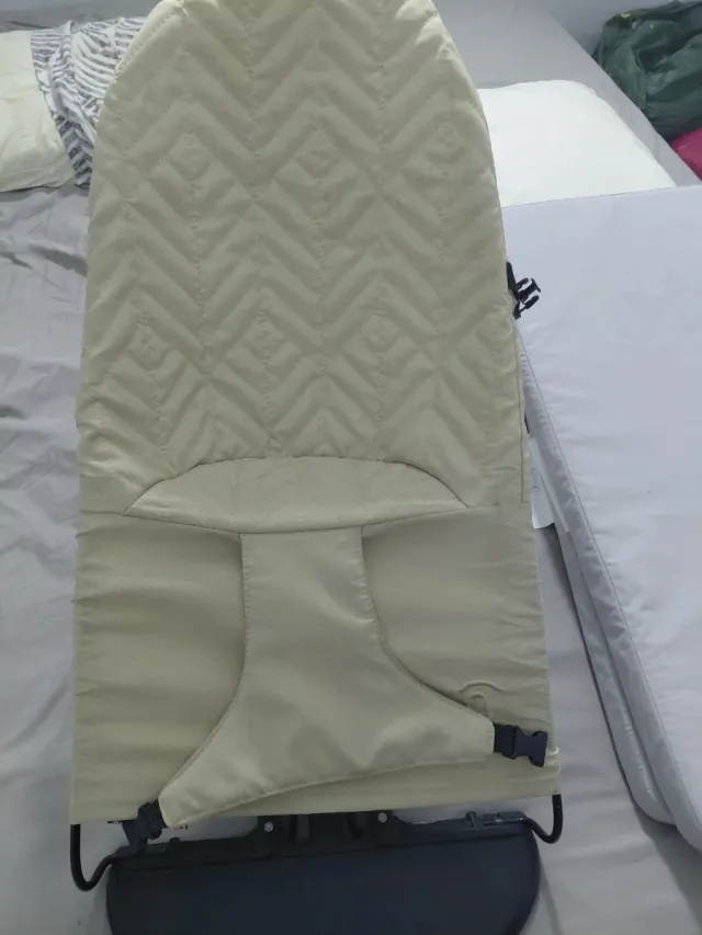 Hamaca para bebé en color beige, con un diseño acolchado y suave. - Tejido acolchado con patrón de rombos. - Arnés de seguridad. - Estructura metálica.