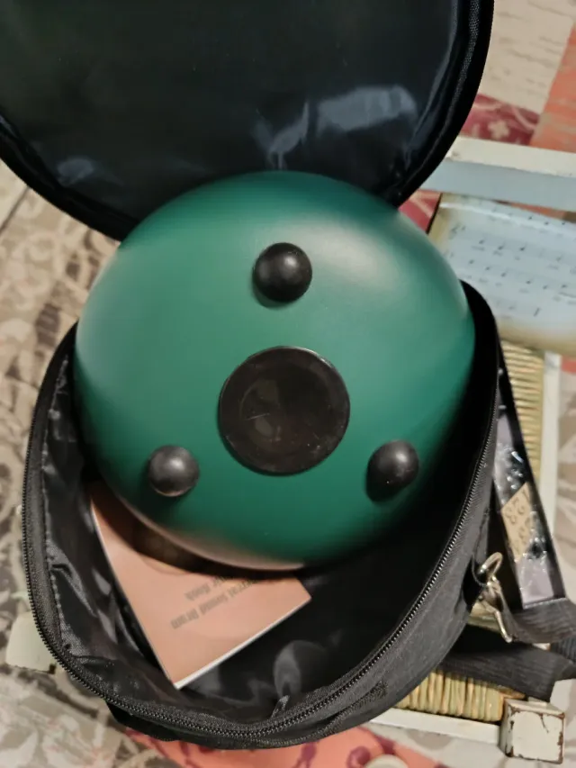 Detalles del productoHandpan de 11 tonos en color verde, ideal para músicos y amantes de la percusión.